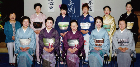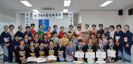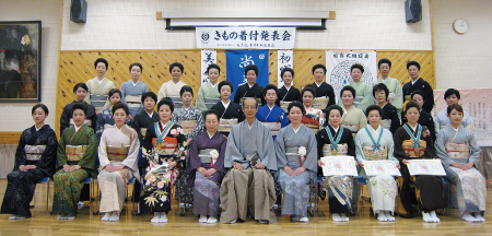 各支部/学園ごとに行う年に一度のきもの着付発表会。鏡を見ないできものを着る。それを、あたりまえのことにしてしまうのがこの機会。留袖/振袖/訪問着に袋帯の着付けと、訪問着に袋帯、おしゃれ着に名古屋帯の着せ付けの各部門で日頃のお稽古の成果を披露します。指導者の技術展示も見逃せません。