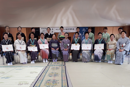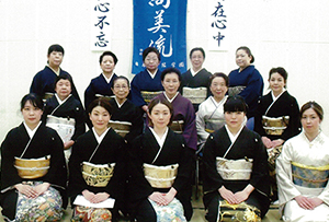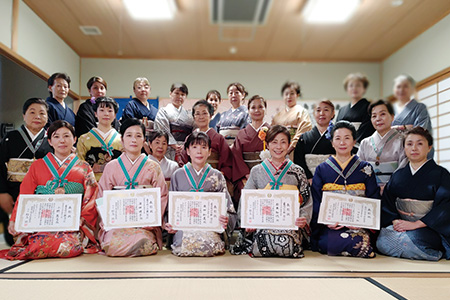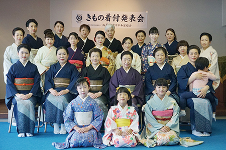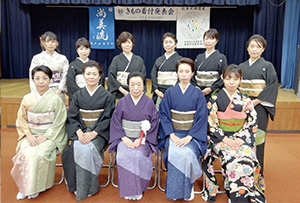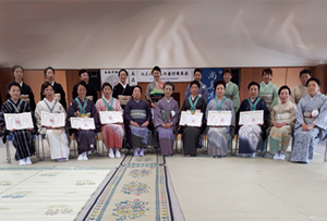 各支部/学園ごとに行う年に一度のきもの着付発表会。鏡を見ないできものを着る。それを、あたりまえのことにしてしまうのがこの機会。留袖/振袖/訪問着に袋帯の着付けと、訪問着に袋帯、おしゃれ着に名古屋帯の着せ付けの各部門で日頃のお稽古の成果を披露します。指導者の技術展示も見逃せません。
