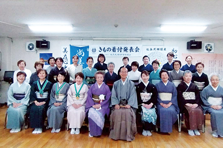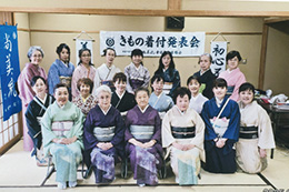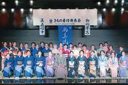 各支部/学園ごとに行う年に一度のきもの着付発表会。鏡を見ないできものを着る。それを、あたりまえのことにしてしまうのがこの機会。留袖/振袖/訪問着に袋帯の着付けと、訪問着に袋帯、おしゃれ着に名古屋帯の着せ付けの各部門で日頃のお稽古の成果を披露します。指導者の技術展示も見逃せません。