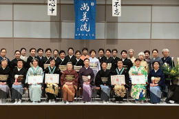各支部/学園ごとに行う年に一度のきもの着付発表会。鏡を見ないできものを着る。それを、あたりまえのことにしてしまうのがこの機会。留袖/振袖/訪問着に袋帯の着付けと、訪問着に袋帯、おしゃれ着に名古屋帯の着せ付けの各部門で日頃のお稽古の成果を披露します。指導者の技術展示も見逃せません。