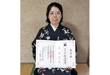 大渕康子さんが壱級、鈴木希望さん、渡辺操さん、中山唯さんが参級お免状を取得されました。