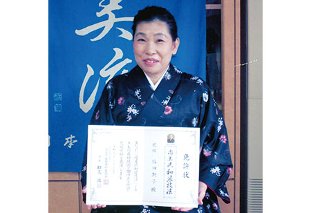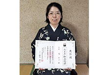 宮戸やす代さんが竹田副会長より準師範お免状授与されました。