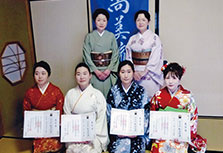 中家緑さん、島田真井子さん、上野山詩麻さんが弐級、上岡文美さんが参級のお免状取得されました。