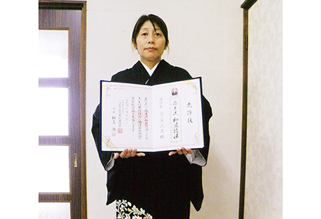 足鹿 千晶さんが和装参級のお免状を取得されました。