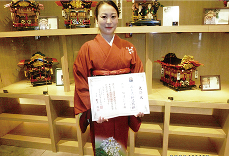 鷲見 理加さんが和装壱級のお免状を取得されました。