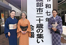 京都府の中央北寄りに位置する田園都市:綾部市の「二十歳の集い」としての催しは3回目。その二十歳の集いにご参加される308名の方々のお着付け直しのボランティア活動をしました。