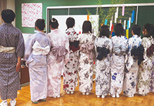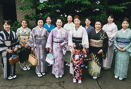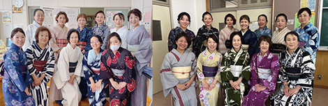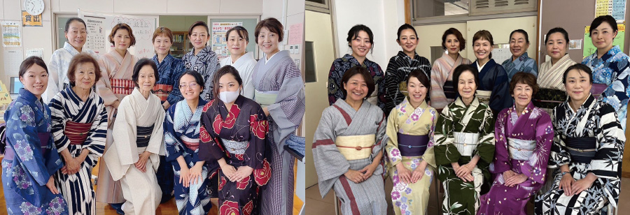 ゆかた講習会では、2校の1年生計16クラスの生徒さんが個性豊かに楽しく参加。教えるというより一緒に体験するというスタンスで、新鮮な気持ちで向き合えました。講師陣のゆかた姿も年々お洒落に磨きがかかっている様子が印象的です。